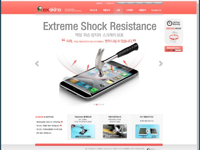 스마트폰 액정보호필름 '엑스킨스' 홈페이지 웹디자인·제작